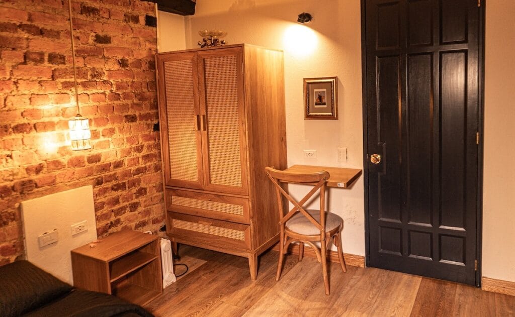Las sólidas paredes conservan la esencia de la arquitectura tradicional. Esto no solo brinda un encanto estético incomparable, sino que también actúa como un excelente aislante natural del ruido exterior. Elegir este alojamiento en la candelaria te permite viajar en el tiempo y dormir en la historia, sin renunciar jamás a las ventajas y lujos del siglo veintiuno.